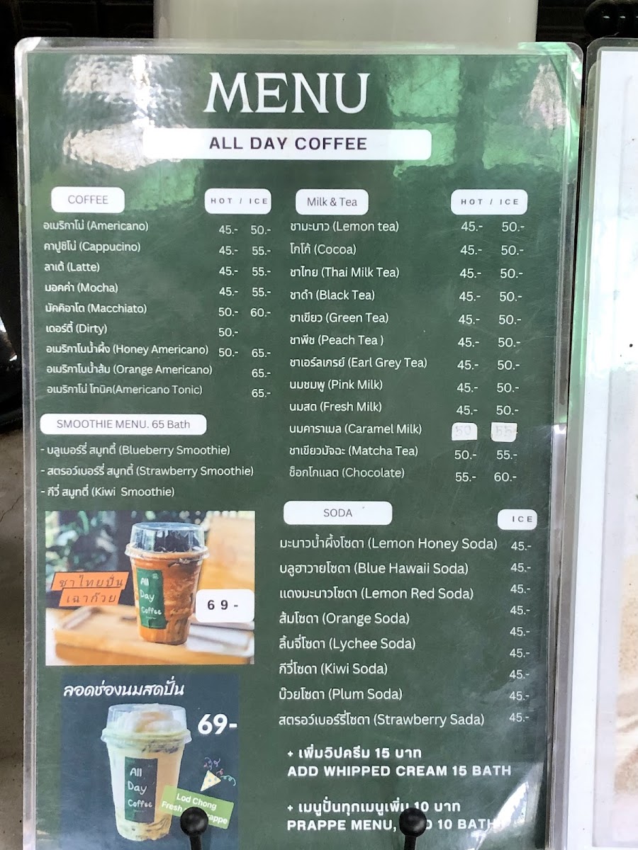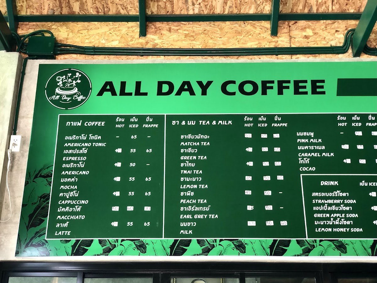 Welcome to ALL DAY COFFEE, an inviting cafe nestled in Chiang Dao, Chiang Mai. Here, coffee lovers will find a treasure trove of aromatic brews and delicious eats that delight the senses. From the moment you step in, the clean and comfortable environment beckons you to unwind.